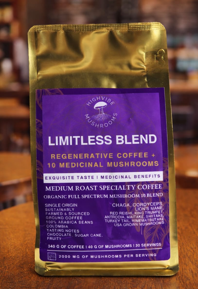 Meet your new ritual. LIMITLESS Espresso is a bold, smooth espresso crafted from regeneratively grown, specialty-grade coffee and infused with our signature blend of functional mushrooms to deliver clean, sustained energy without the crash. Fine grind.