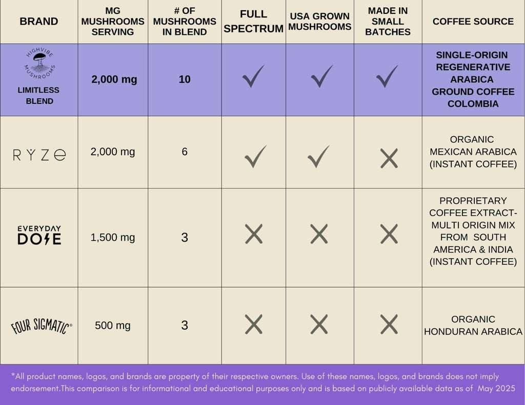 Unlike most brands that use small doses or only 1–2 mushrooms,